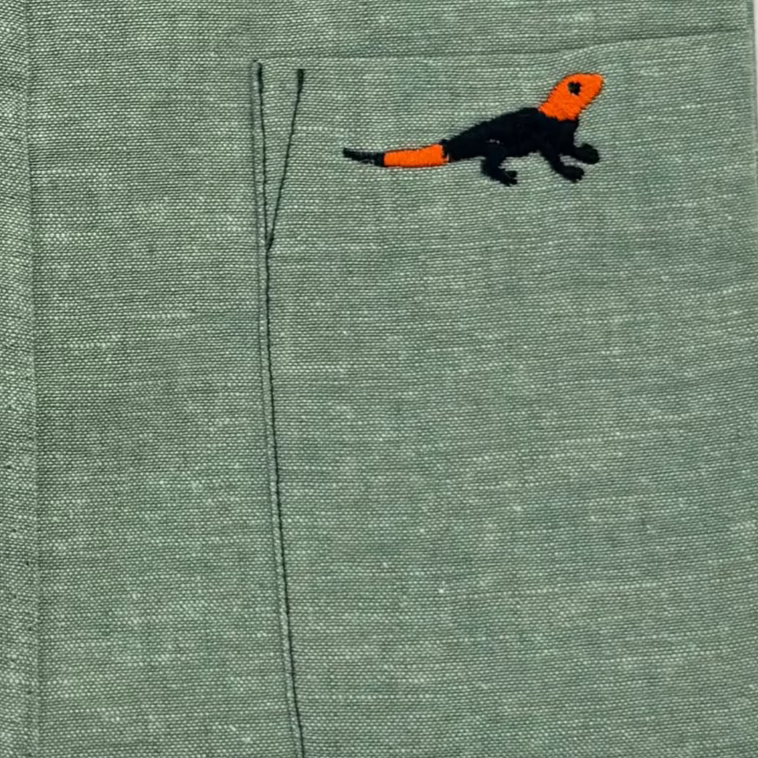 Chemise Unisexe en lin – Verte avec broderie Margouillat tête rouge