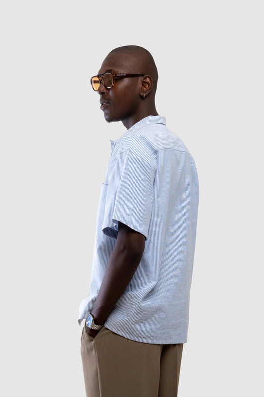 Chemise Unisexe en lin – Bleu avec broderie Lêkê